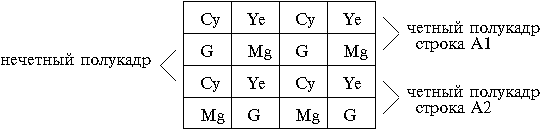 а в строке A2 получают "голубой" цветоразностный сигнал: